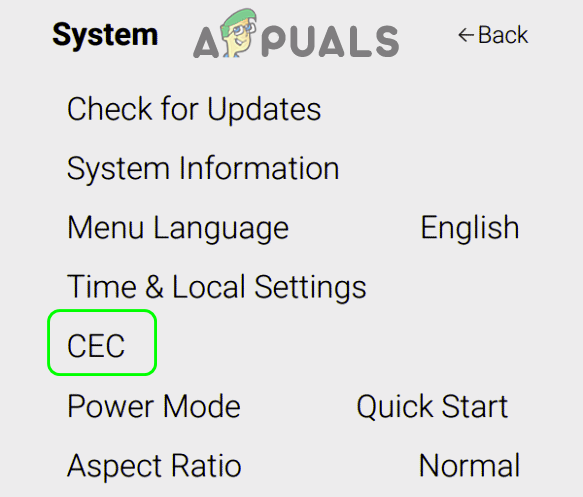 Open CEC in the System Menu of the Vizio TV Settings - Then restart your TV and upon restart, check if its startup issue is resolved.