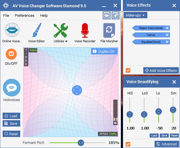 AV Voice Changer is a complete audio station and takes a more professional approach compared to other options in the market. With this software, you can explore endless possibilities with your voice, such as making it sound deeper, older, younger, feminine, and more. Its voice morphing capabilities are sophisticated, with options like a 20-35-year-old man or a 60-year-old man.