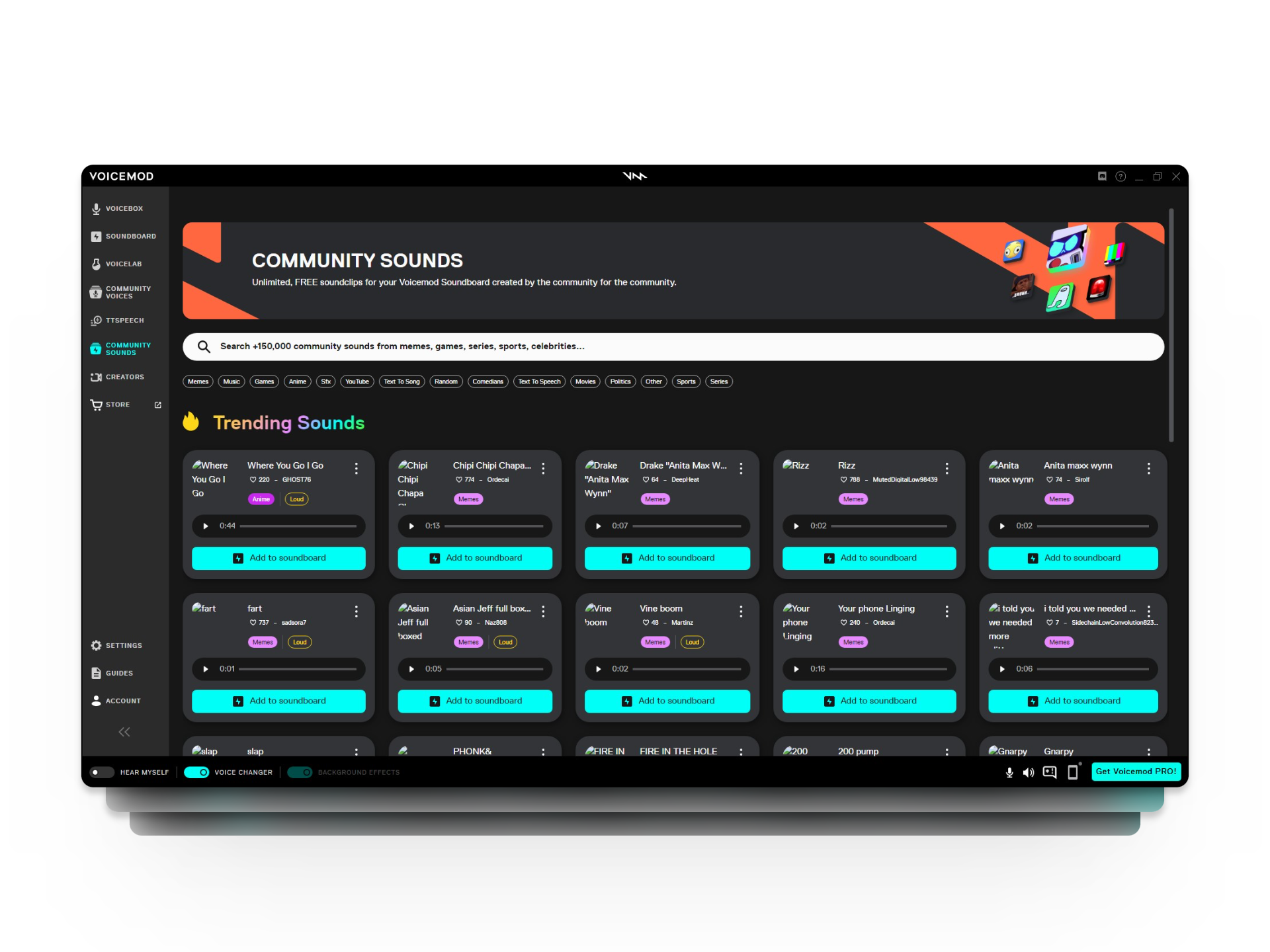 Overall, Voicemod features a user-friendly and sleek UI, with popular sound effects easily accessible from the home screen. It’s straightforward to navigate and can be used for streaming, gaming, and even professional meetings.