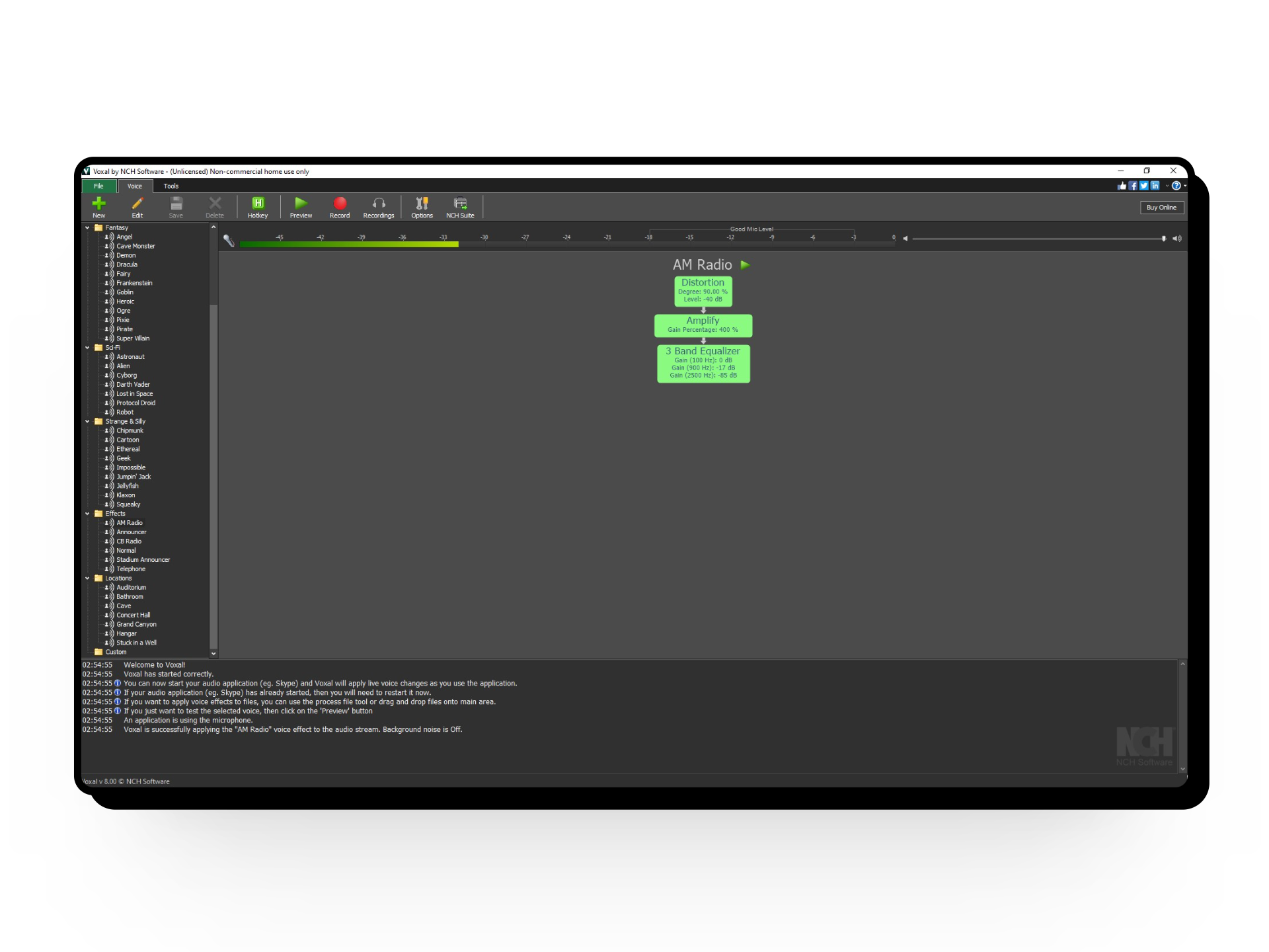 MorphVOX is ideal for both novices and experts with ready-to-use sound effects like child, robot, or warrior. Advanced users can create high-quality modulated recordings by adjusting the tone and pitch of their voice. It boasts a vast library of effects, filters, premade voices, and background noises for enriching gaming and chatting experiences.