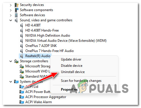 - Conflicting audio driver – As it turns out, you can expect to deal with this issue in scenarios where you are actively using the Realtek MSI driver which is known to cause a lot of audio issues with Call of Duty Modern Warfare and Call of Duty Warfare. In this case, simply uninstall the dedicated Realtek MSI driver in order to force your PC to use the generic driver.