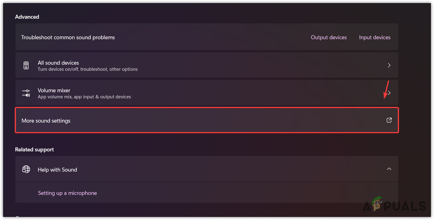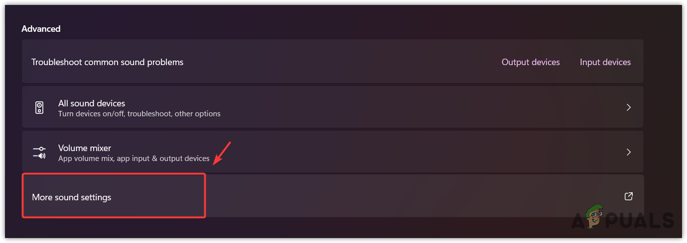 - Scroll down and click on More Sound Settings.
