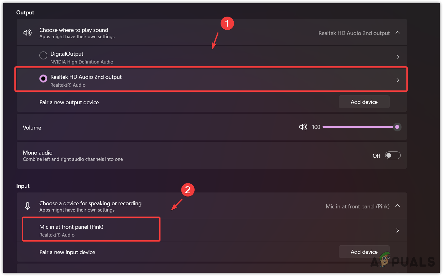 - In the Sound Settings, confirm that the correct output device is selected.