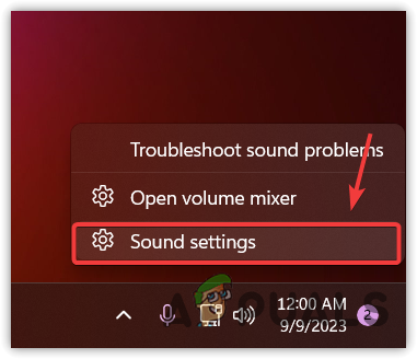 - Right-click the speaker icon in the bottom right corner and choose Sound Settings.