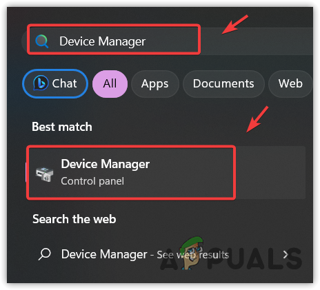 - Access the Start Menu and type Device Manager.