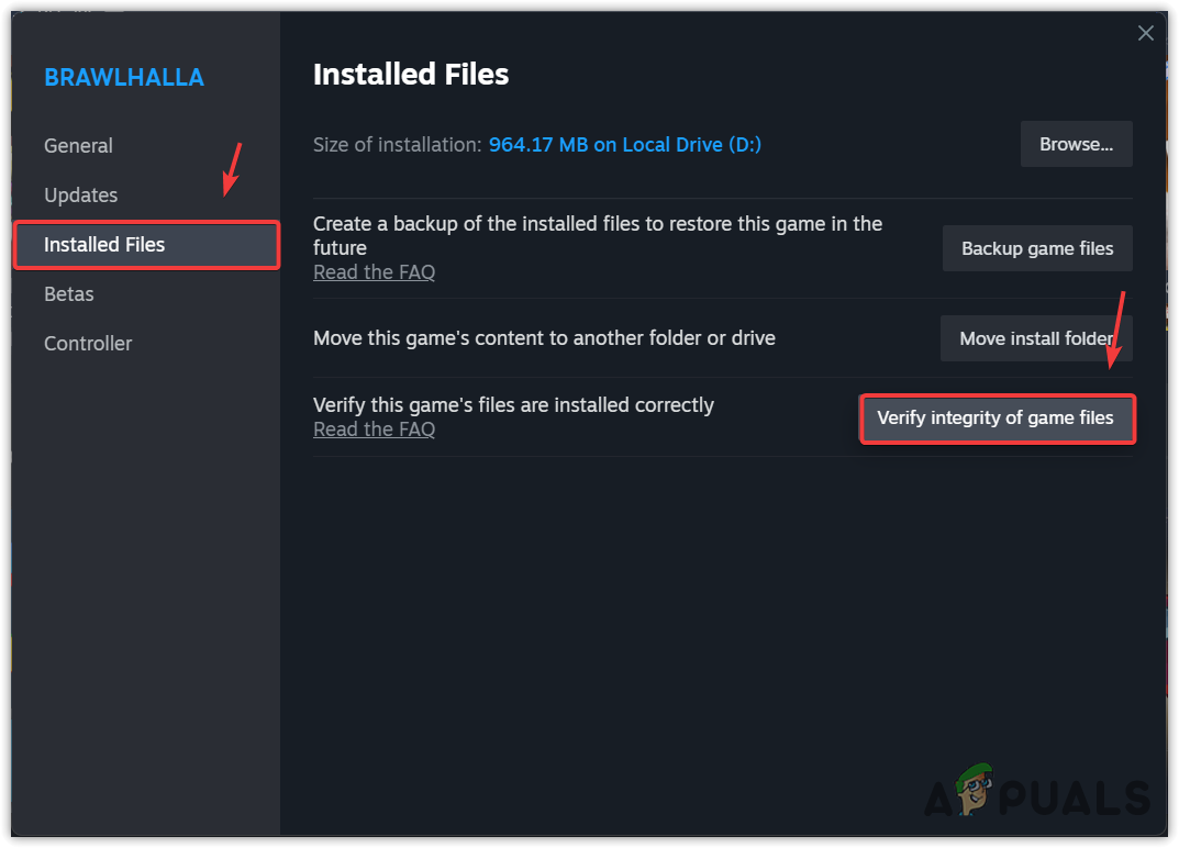- Choose Verify integrity of game files and wait for the process to finish.