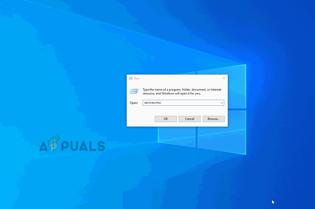 - Press Windows key + R to open up a Run dialog box. Next, type ‘services.msc’ and press Enter to open up the Services screen.