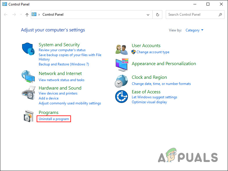 - Now click on the Uninstall a program option and search for the VPN service in the list.
