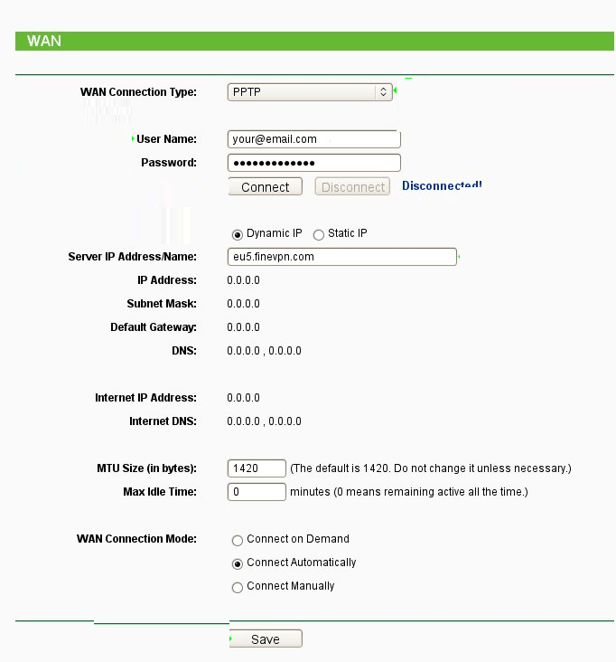 - And click on Network, then click on WAN. Now select WAN Connection Type and choose PPTP