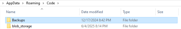 C:\Users\<YourName>\AppData\Roaming\Code.