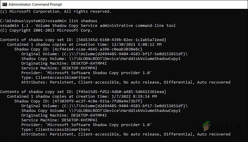 vssadmin delete shadows/ shadow={56d1345d-6160-439b-82ec-1c2ab5a72eed Once the command is executed, perform the desired task again and check if you still face the VSS error 0x8004231f.