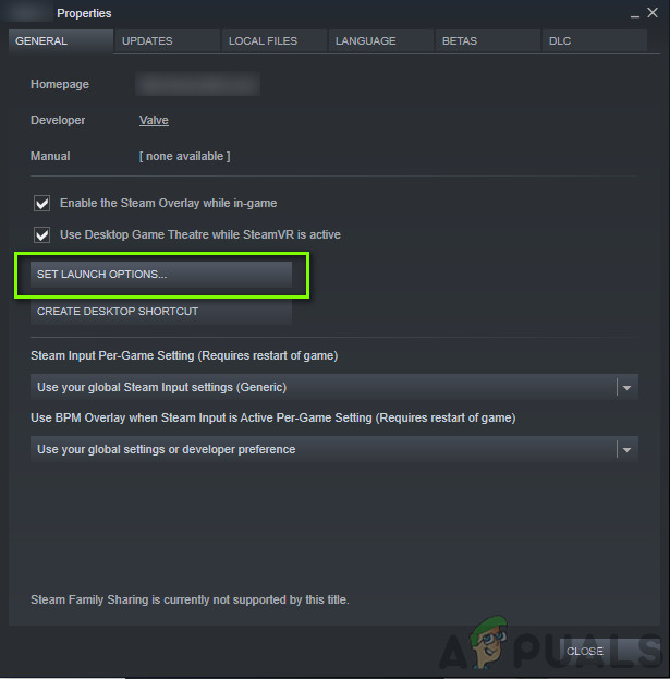 - Then in the General section and click on the Set Launch Options.