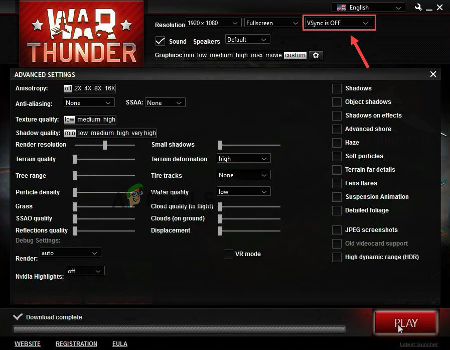 Lower down all the options in War Thunder graphic tabs - Now restart the game and launch War Thunder to see if the issue is fixed.