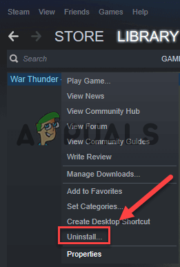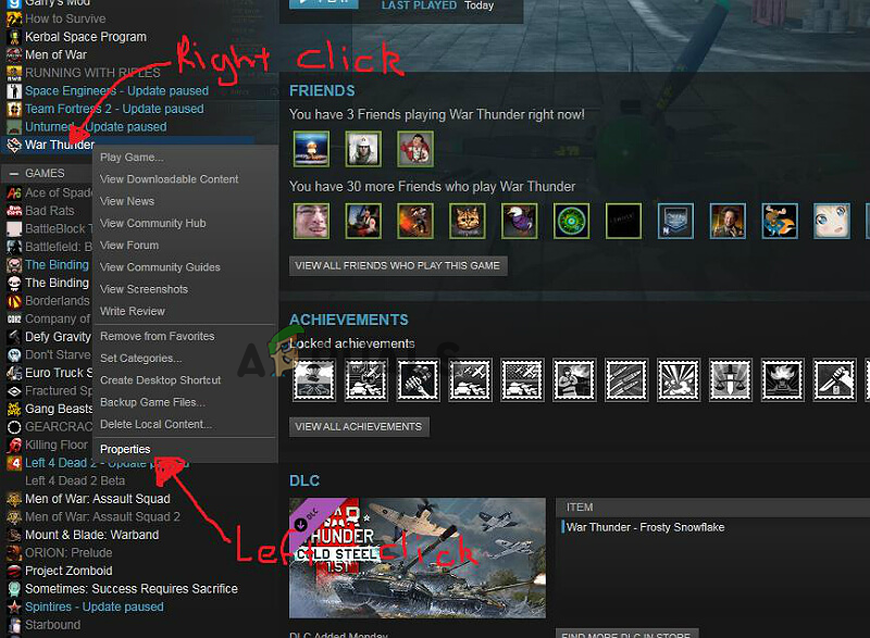 - Next, right-click on the War Thunder game and click on Properties.