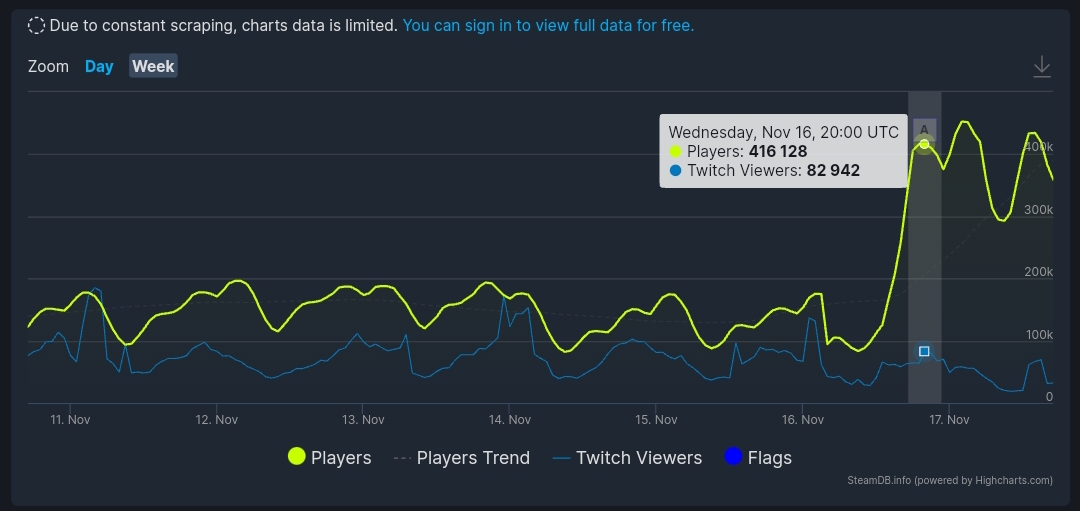 Still, it was not the end, and the game continues to go uphill and is currently sitting at a new all-time high of 452,281 concurrent players on Steam.