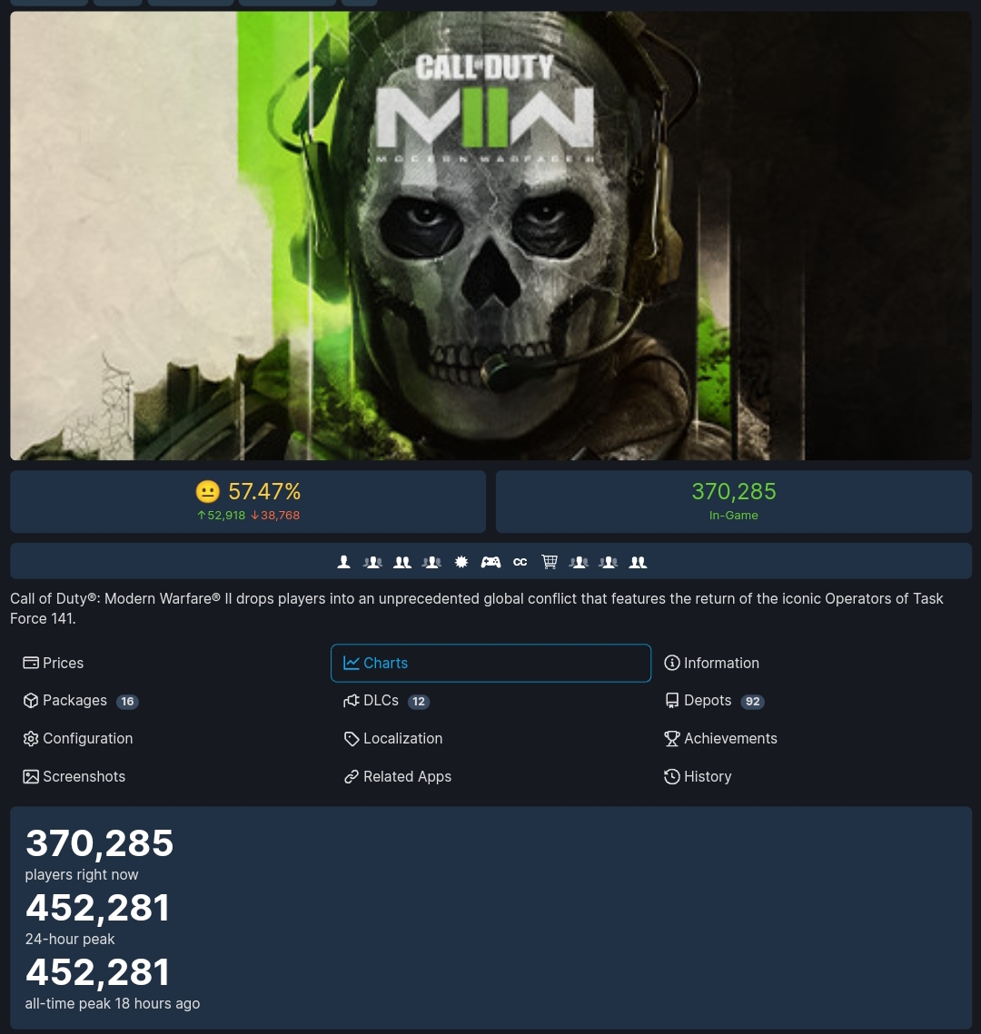 Well, Warzone 2.0, which was released as a free Battle Royal add-on for Modern Warfare 2, took the game to new highs; within only 2 hours after the servers went live, the concurrent players on Steam surged over 416K, already shattering all the records of concurrent players of any Call of Duty game.