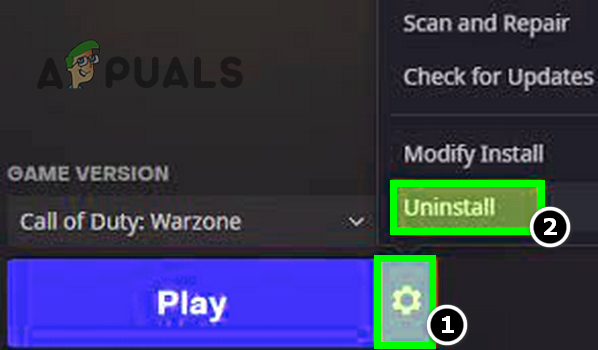- Now expand Warzone (if shown) and click on Uninstall.
