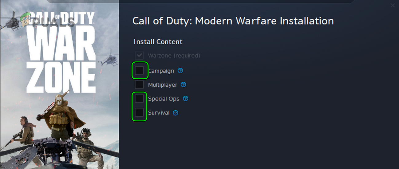 Modify Warzone Installation to Remove Campaign, Special Ops, Survival - Now apply the changes and launch Warzone to check if the crashing issue is resolved.
