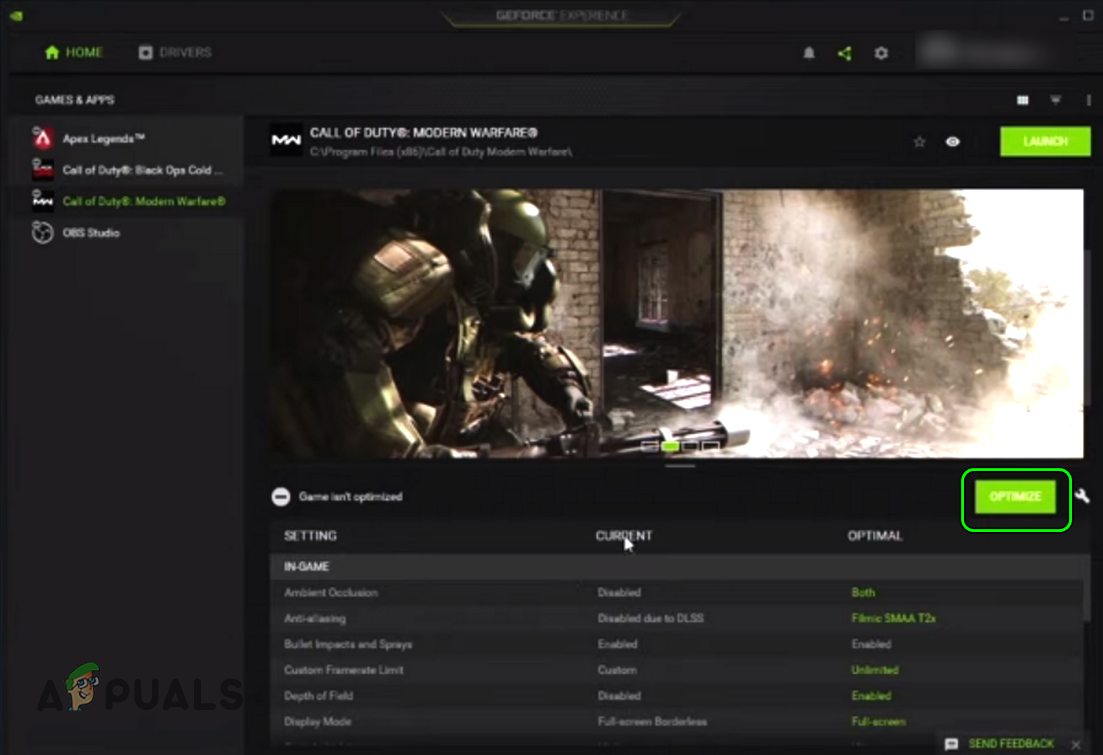 The Warzone game might crash with error 6.154 if the game is not using the optimal graphics of the system due to which the system may fail to properly render the game’s graphics. In this context, optimizing the Warzone game in the Nvidia GeForce Experience (or any other OEM graphic utility) may solve the problem.