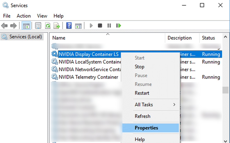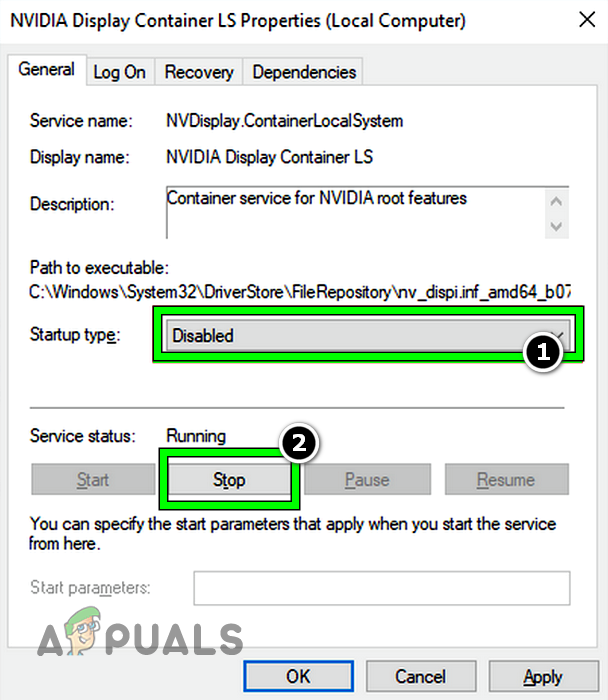 Open Properties of Nvidia Services in Windows Services Manager - Then, click on Stop and repeat the same for all other Nvidia services (like NVIDIA LocalSystem Container).