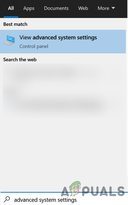 - Click Windows, search and open Advanced System Settings.