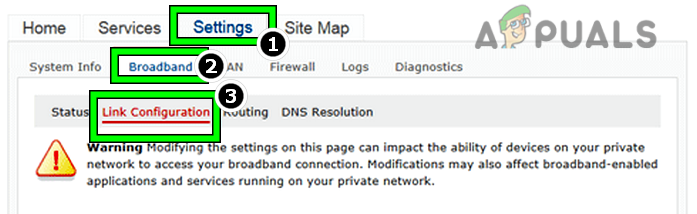 - Now head to the Settings tab and click on Broadband.