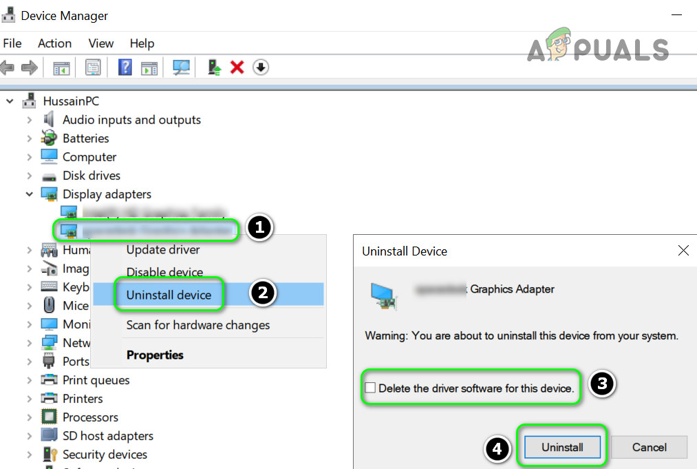 Check the Option of Delete the Driver Software for This Device for the Display Adapter and click on Uninstall - Now click on Uninstall and wait till the driver is uninstalled.