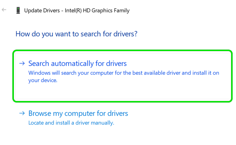- Then select Update Driver and click on Search Automatically for Drivers.