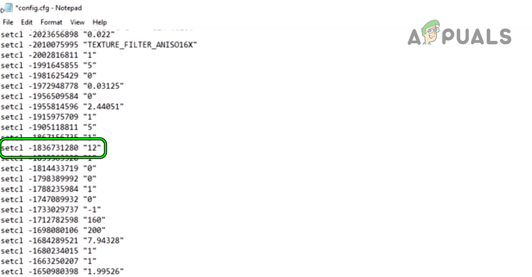 Set the Value of setcl -1836731280 to 12 - Now change its value from 1 to 12 and close the file after saving it. If there is no such entry, then add one at the end of the file.