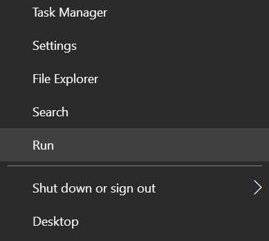 - Right-click Windows and select Run.