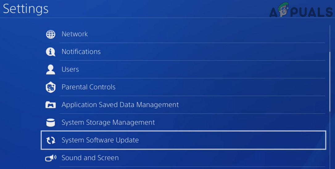 - Launch the PS4’s Settings and open the System Software Update.