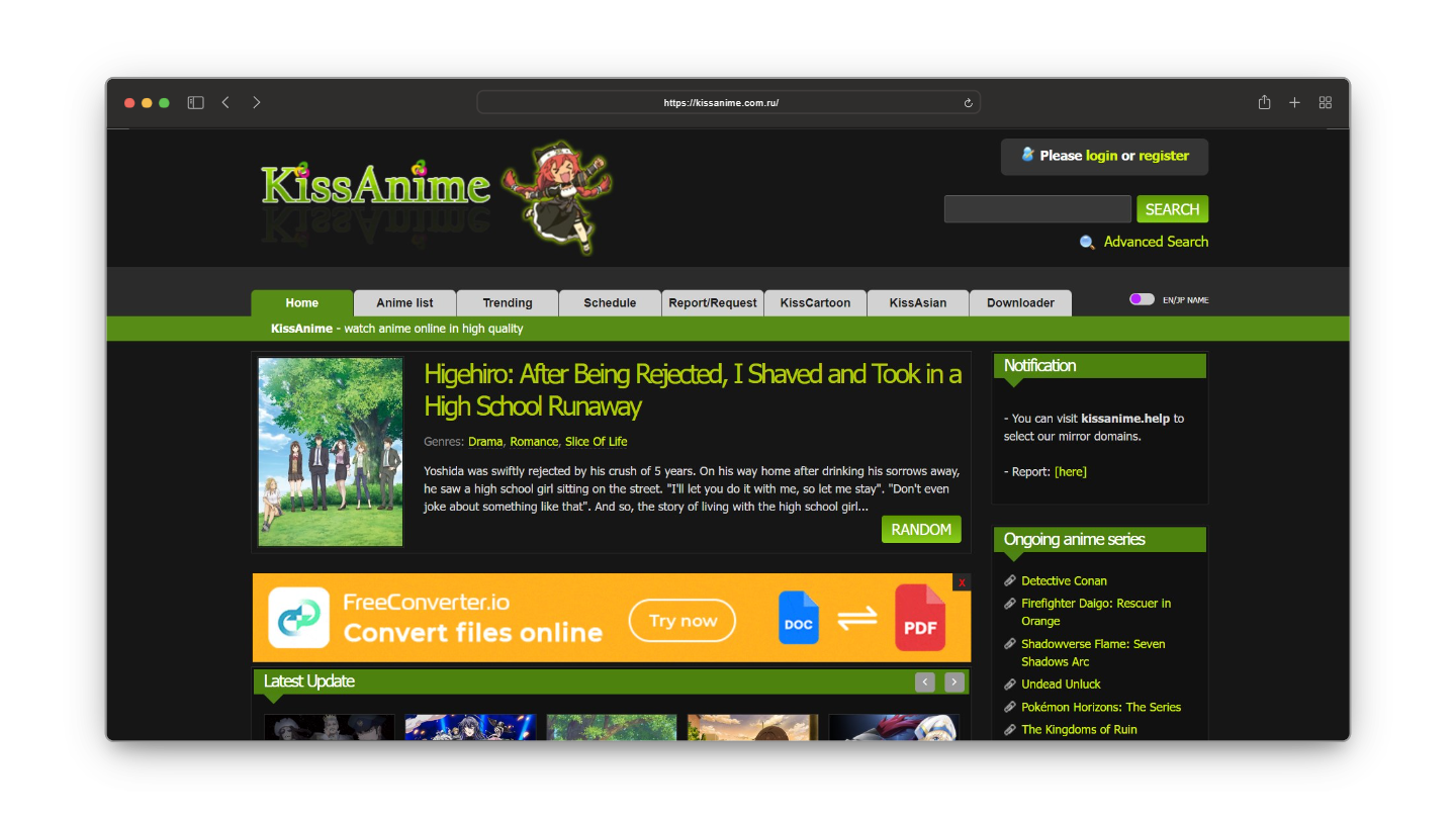 If you’re an anime enthusiast constantly hunting for free viewing options, head to KissAnime. It is known for its vast collection of anime, covering a wide range of genres, including action, romance, fantasy, science fiction, and more. You can find both famous and lesser-known anime titles.