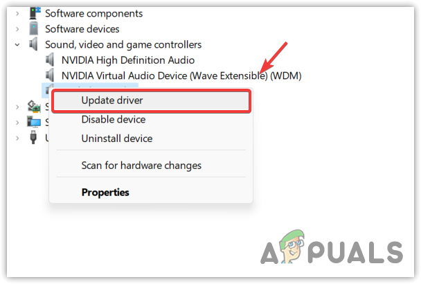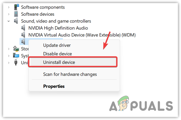 - Open the device manager, right-click the wave audio driver, and select Uninstall device.