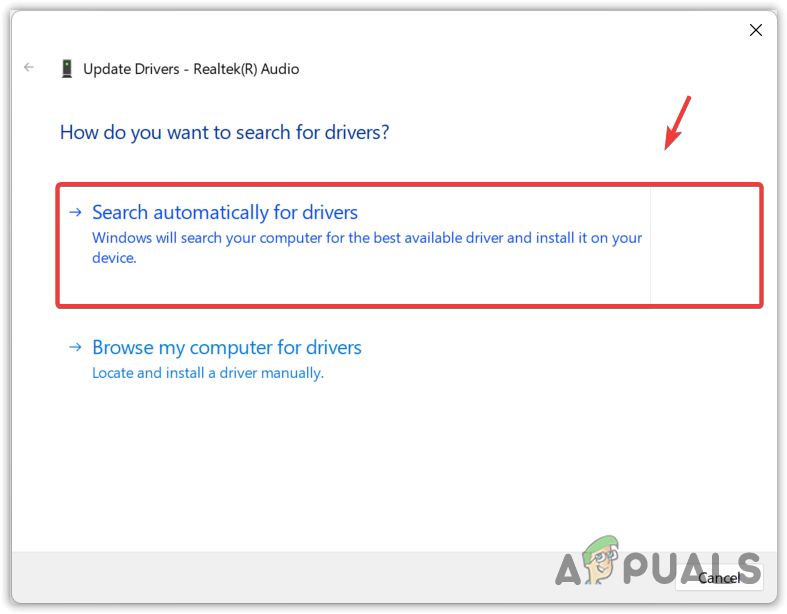 - Then, select Search automatically for drivers. If you encounter, The best drivers for your device are already installed. In this case, go to your system manufacturer’s site and download the audio driver from there.