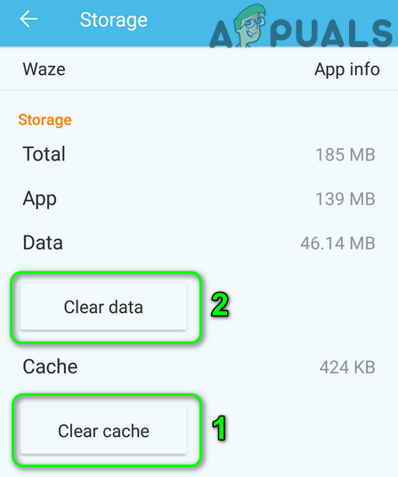 Force Stop the Waze Application and Open Storage - Now tap on the Clear Cache button and then tap on the Clear Data button.