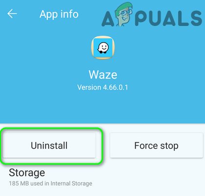 Uninstall the Waze Application - Now confirm to uninstall the Waze application and then restart your phone.
