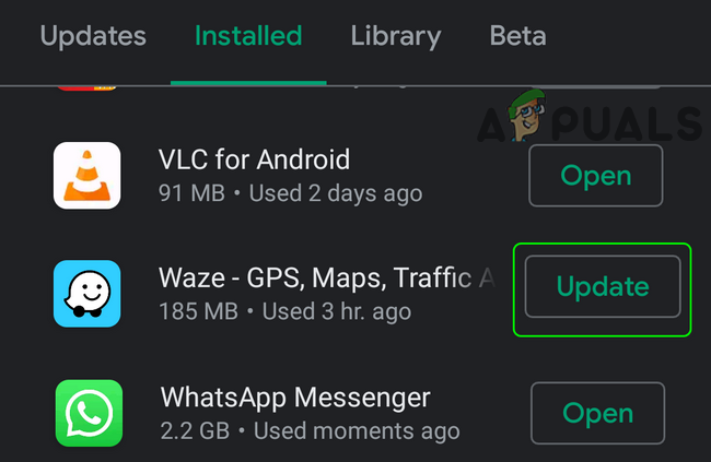 Waze application is updated regularly to add new features and patch the known bugs. However, you may encounter the error under discussion if you are using an outdated version of the Waze application due to which several modules fail to load properly. In this context, updating Waze application to the latest build may solve the problem. For illustration, we will guide you through the process of the Android version of the Waze application.