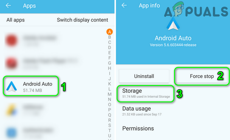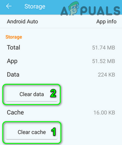 Force Stop Android Auto and Open Storage - Now tap on Clear Cache and then tap on Clear Data (you may check if the issue is resolved, if not, repeat steps 1 to 5).