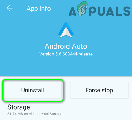 Clear Cache and Data of Android Auto - Then hit the back button and tap on the Uninstall button.
