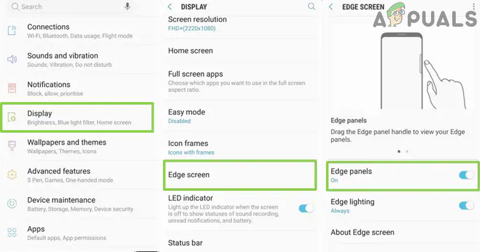- Now open Edge Screen and then enable the Edge Panels Switch.