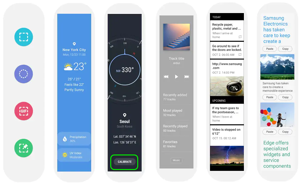 Enable the Edge Screen of Your Phone - Then swipe left to show the menu and again swipe on the dots near the lower left to open the second page of the Edge menu.