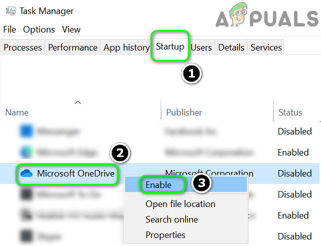 If OneDrive is disabled at boot or fails to load with the system’s startup, you may face the issue in question. Enabling OneDrive to launch at system startup may help.