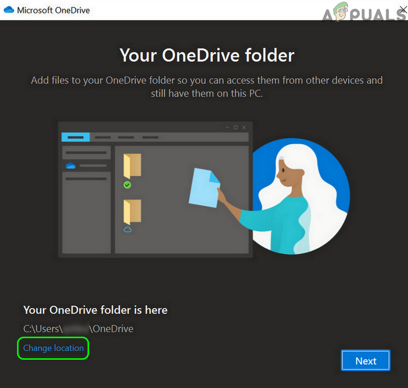 - Under the Your OneDrive Folder is Here option, click on Change Location and set it to the default path: