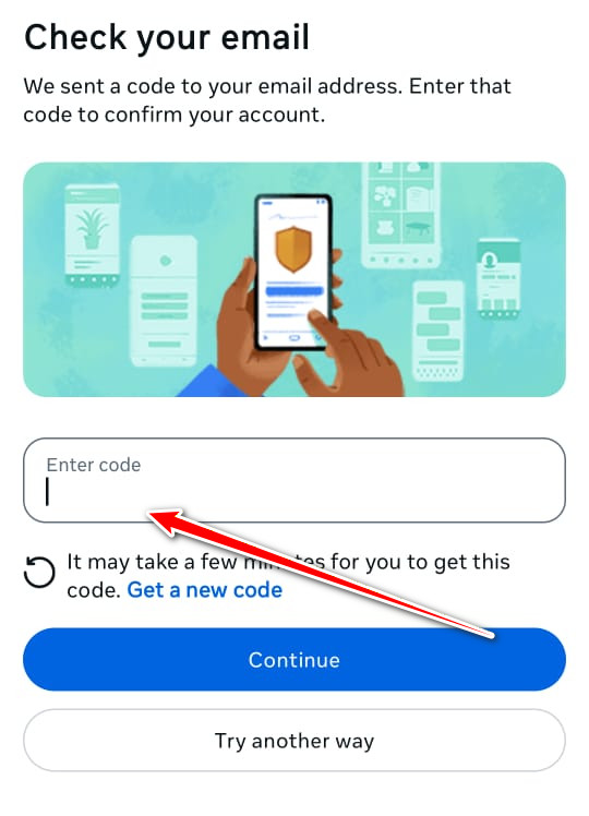 - Facebook will send a code to your email. Enter it in the box provided.