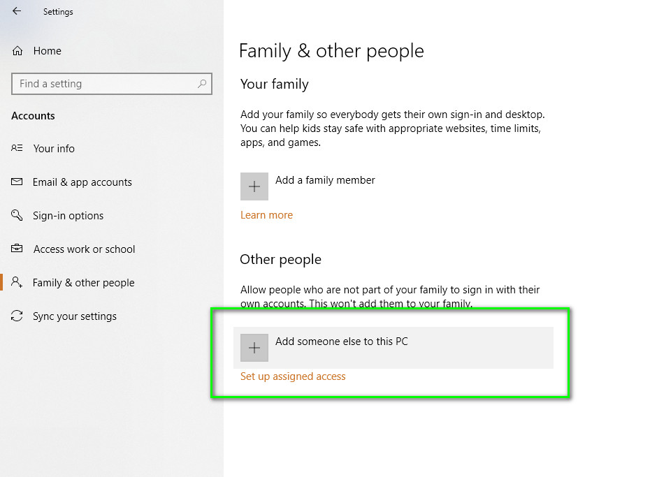 Open Accounts Settings - Now click “Family and other users” options present at the left side of the window.