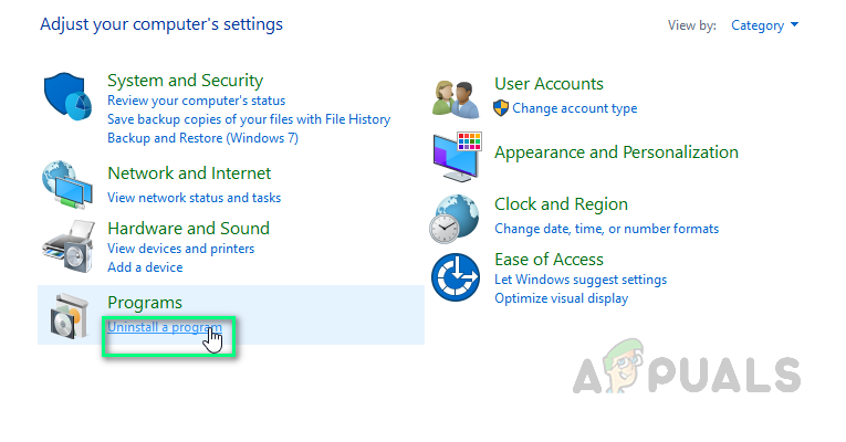 Opening Control Panel - Choose Uninstall a program under the Programs section.