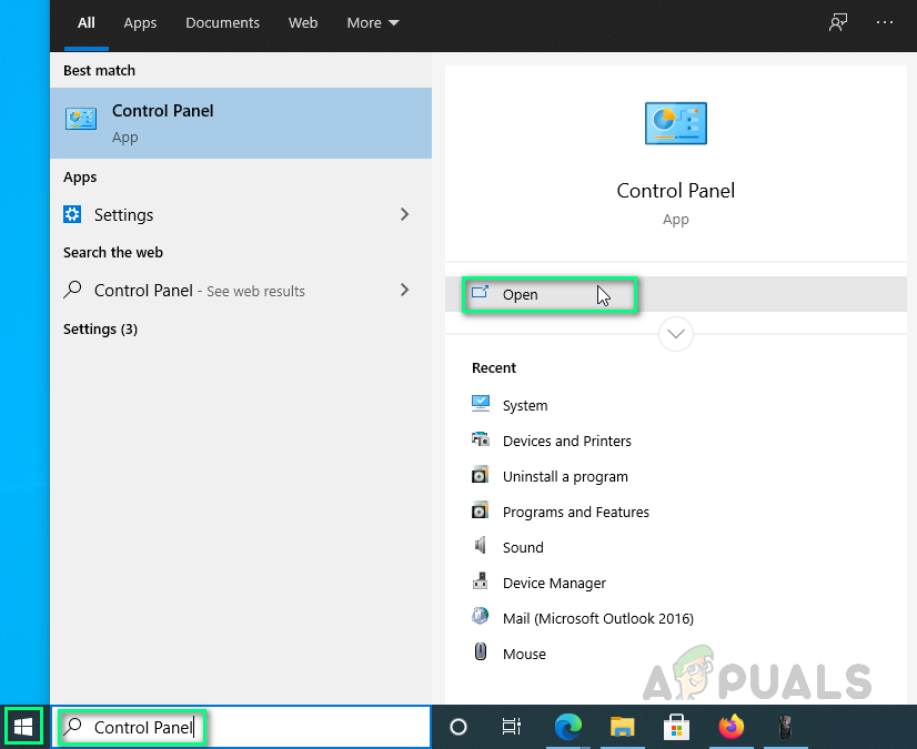 - Click Start, search Control Panel, and open it.