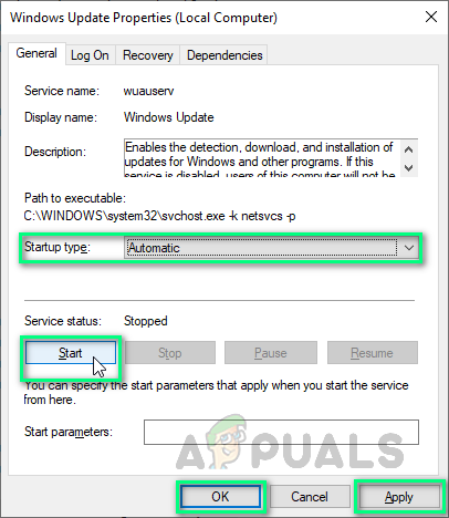 Opening Service Properties - Change its Startup type to Automatic, click Start > Apply > OK. This will enable Windows on your PC to start its updates automatically (not bound by the user permission anymore).