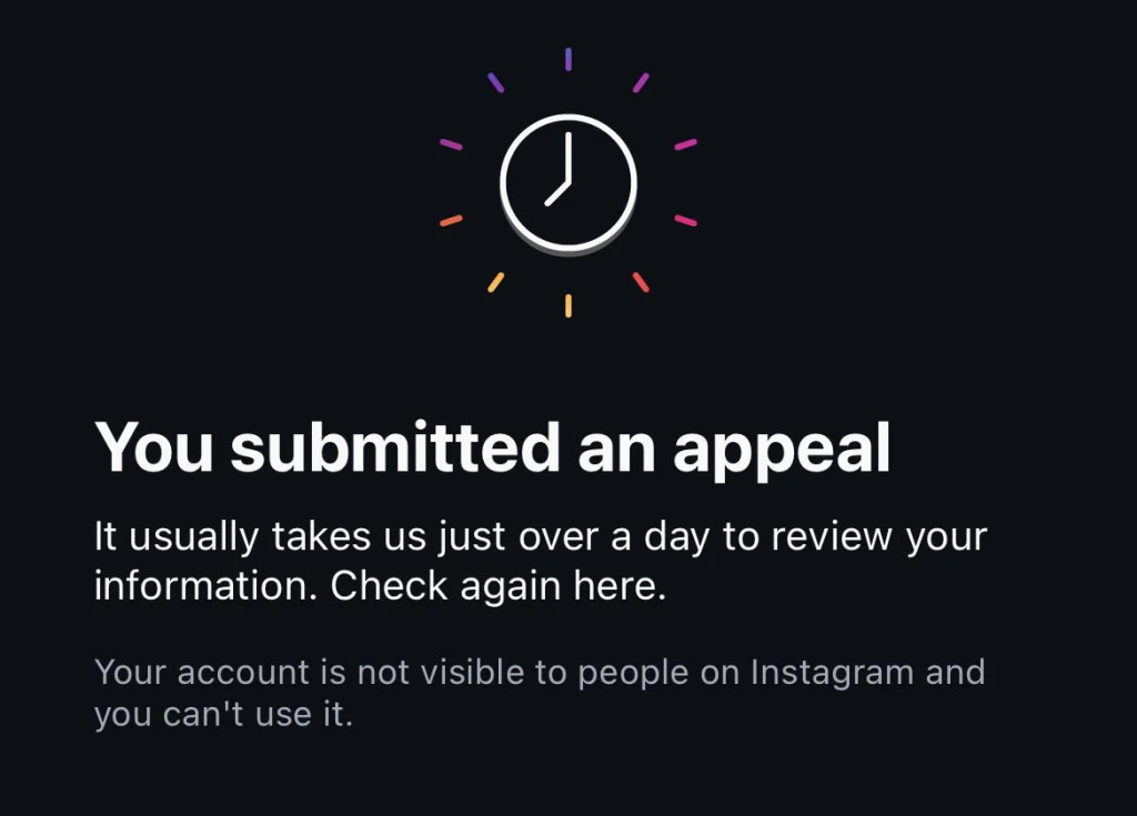 Tip: Keep your contact email active during this period. If Instagram decides to respond, it will almost always be through email.