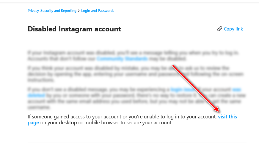 - Visit this official Instagram help page. In the fourth paragraph, find the sentence “If someone gained access to your account or you’re unable to log in to your account, visit this page on your desktop or mobile browser to secure your account.”